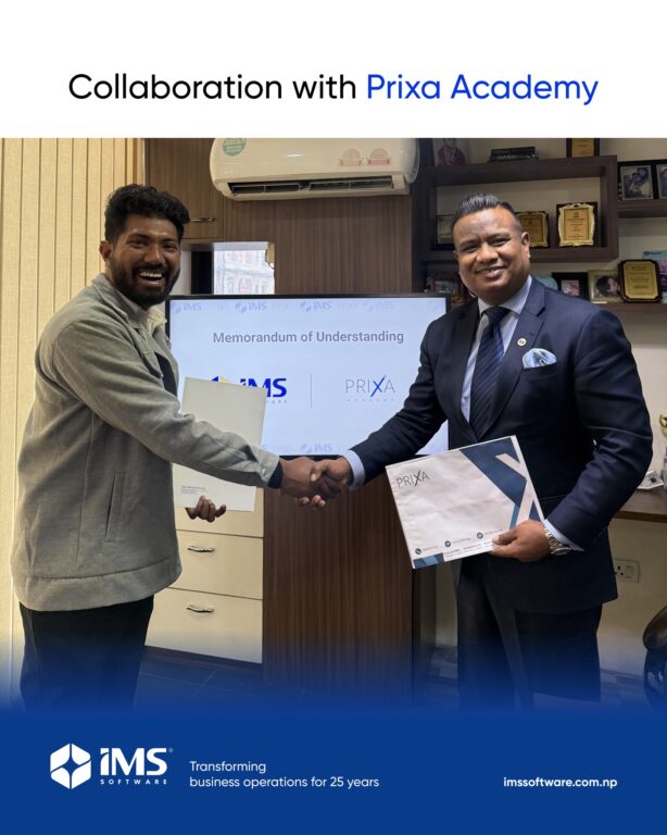 Kathmandu — IMS Software and Prixa Academy have signed a Memorandum of Understanding (MoU), formalizing a strategic partnership aimed at enhancing structured, industry-aligned information technology (IT) training in Nepal.